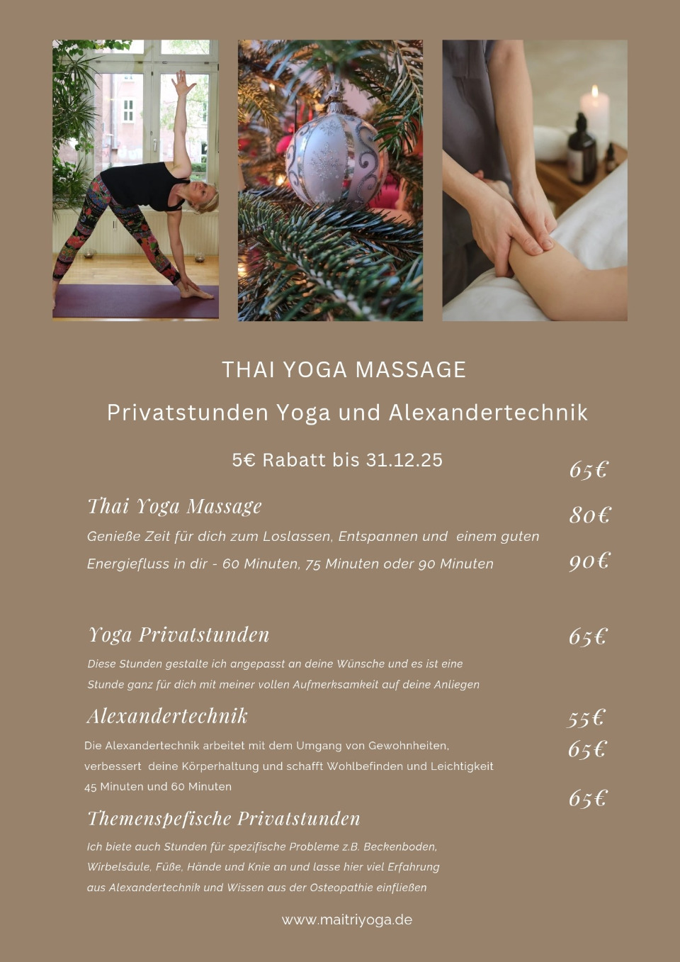 Ich freue mich, dass ich dieses Jahr wieder beim beim Yoga Beach Festival Freiburg im Strandbad Freiburg dabei sein werde. Anbieter ist Namaste United. Es wird an dem Wochenende 28./29.6.2025 eine Vielzahl von Yogaevents geben und ich werde eine Yogalasse zu den Chakren anbieten. Außerdem gibt es einen Yogaworkshop mit mir Thaiyoga Massage in Verbindung mit Alexandertechnik.Ich freue mich, dich vielleicht an diesem Wochenende zu sehen. Du kannst ein Ticket für das Yogafestival erwerben bei: